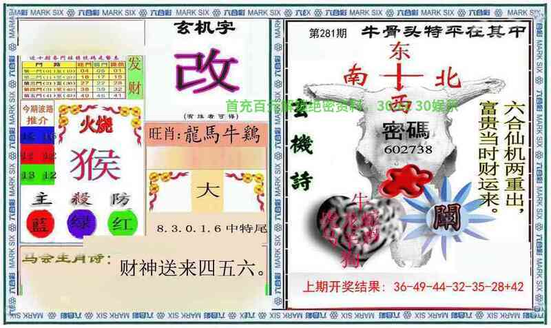 280期:九肖【虎狗蛇马兔牛猴羊】开:鼠42